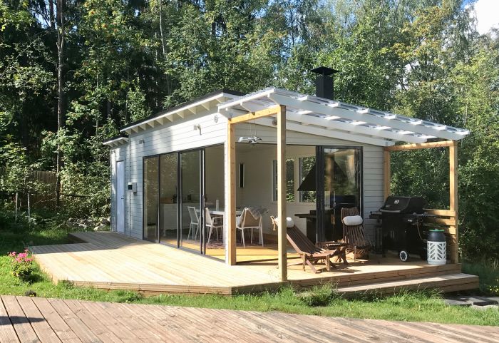 Huone1:n piharakennus voi kätkeä sisäänsä lukemattomia eri toimintoja. Se palvelee muun muassa kesähuoneena, oleskelutilana, majoituspaikkana tai etätyöpisteenä. Suvun kesämökillä tai kotona on ihanaa, kun kylään saapuville vieraille löytyy oma soppi, missä yöpyä oman aikataulun mukaan, kenenkään häiritsemättä.
